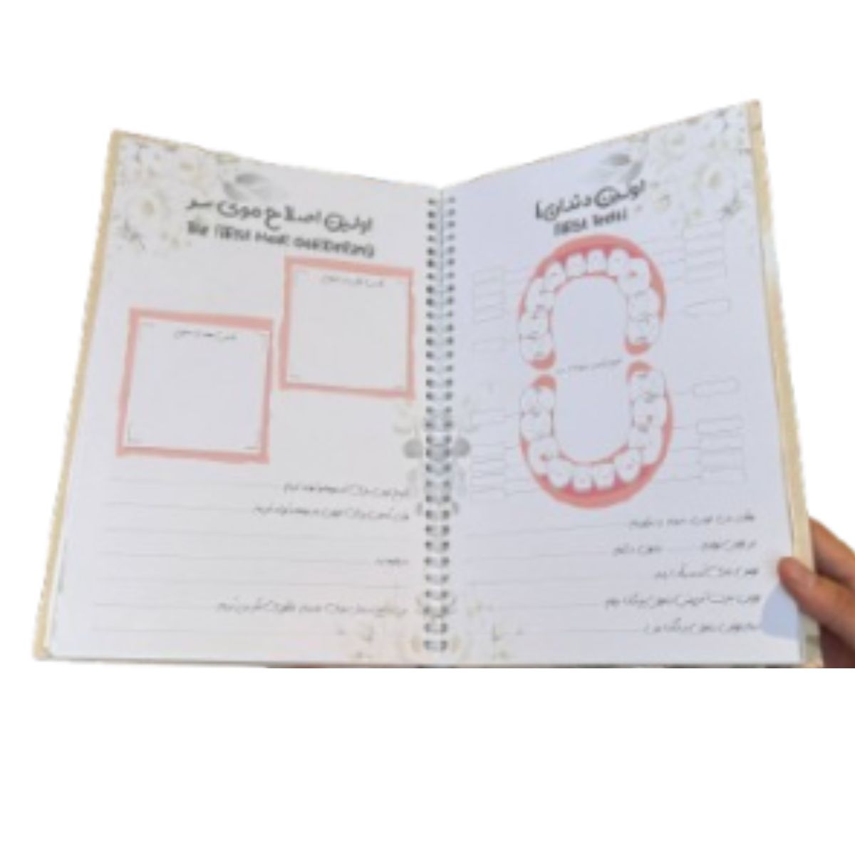 | سایر توضیحات : آلبوم خاطرات كودكی دارای فضاهای مناسب برای نوشتن خاطرات و همچنین عكس های دوران بارداری مادر تا هفت سالگی كودكتان می باشد. جلد البوم مدل جلد سخت می باشد كه ظرافت و لطافت خاصی به البوم داده است.همچنین بر روی جلد بهترین تكنیك های چاپ از جمله یووی برجسته و سلفون مات استفاده شده است. این آلبوم دارای یك جعبه بسیار لوكس و نفیس دكمه دار می باشد |